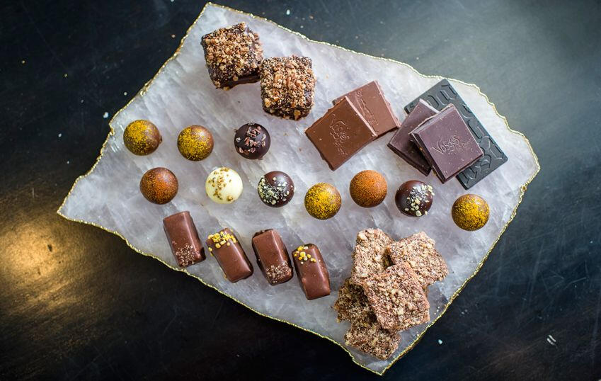 Exotic wine + chocolate tasting, guided meditations and French lavender-inspired savasanas. The featured chocolate is Vosges Haut-Chocolat.